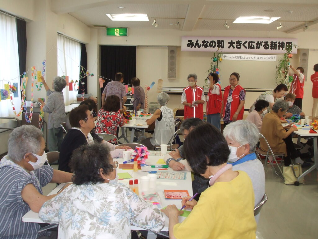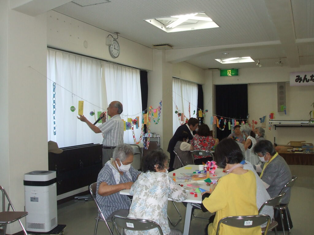 社会福祉協議会 地域サロン 七夕まつり 7/5 2024.7.7 今年も七夕がやってきました。今日は「ほほえみ学級」の皆様と合同の〚七夕まつり〛です。 テーブルの上に色紙、短冊、お飾りに見本がおかれています。出来上がった短冊から飾りつけをしています、今年は部屋の周りにロープを巡らし、お飾りや短冊をつけることにしました。 飾られた短冊をひとつづつ読み上げています。短冊には「家族の健康」「能登半島地震で被災された方々の復興」「世界平和」・・・・・・・ 皆の願いが叶いますよに・・・・・ 最後まで見ていただいてありがとうございます。 Facebook Twitter はてブ Pocket Feedly