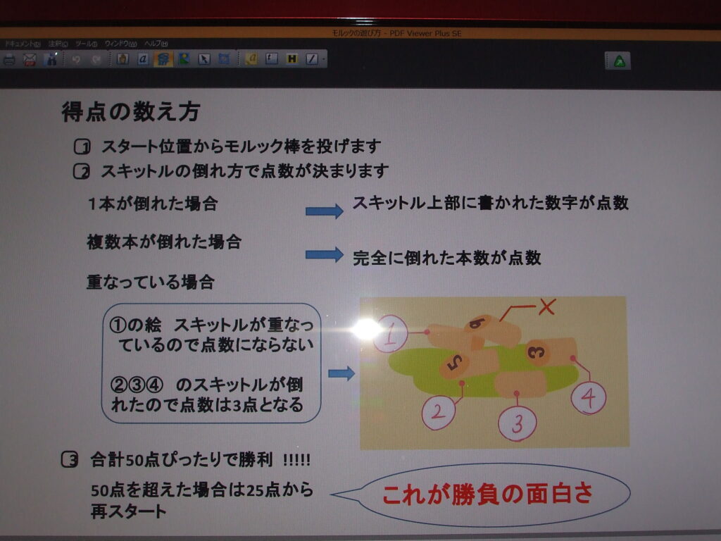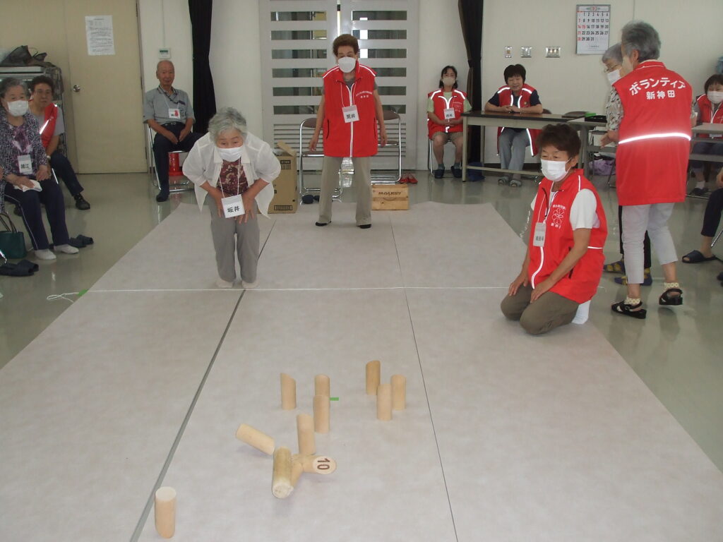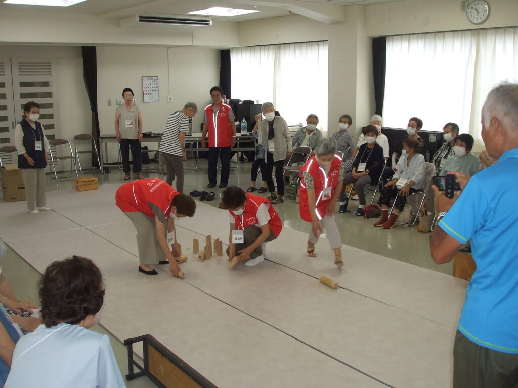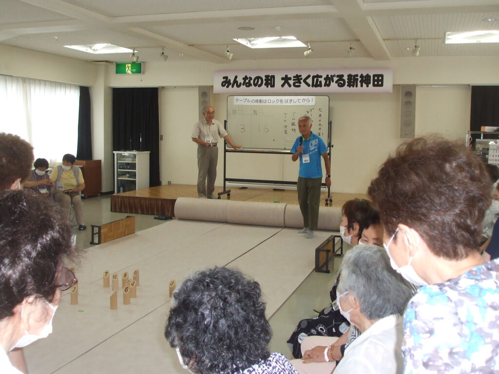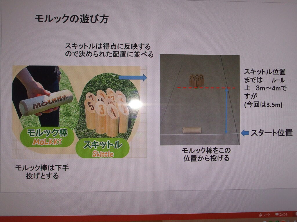社会福祉協議会 地域サロン モルック 7/19 2024.7.21 地域サロン初めてのゲームの説明をする副会長の野村さん。モルックはフィンランド発祥。地区社協で取り組んでいるのは新神田が初めてです。 役員がスキットルの倒れた本数やスキットルに書かれた数字を確認し進行を補助しています。 どのスキットルを倒したらよいかアドバイスをを受ける参加者。 倒れたスキットルを決められた方法で元に立て直してゲームを進行します。 ゲームの進行が分かるように点数をボードに表示し進行しています。 ゲームは全員が3回づつ投げて戦いました。ルールにより50点以上になり再スタートから点数を重ねて勝敗を競いました。初めて取り組んだゲームでしたが、参加者からは面白かったとの感想をいただきました。次回の取組みを考えたいと思います。 モルックのルール説明① モルックのルールの説明➁ Facebook Twitter はてブ Pocket Feedly