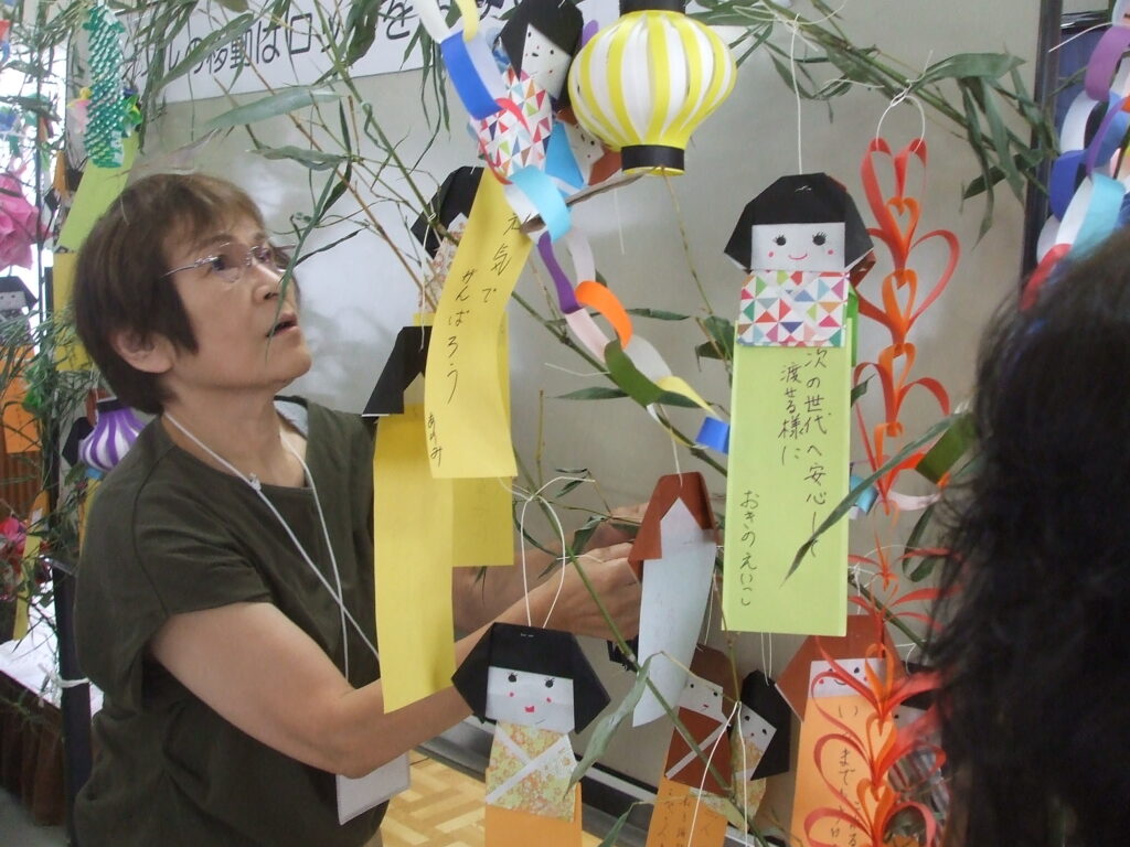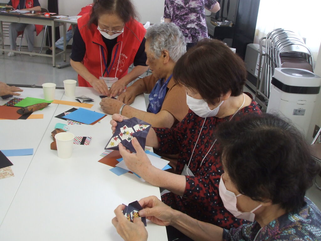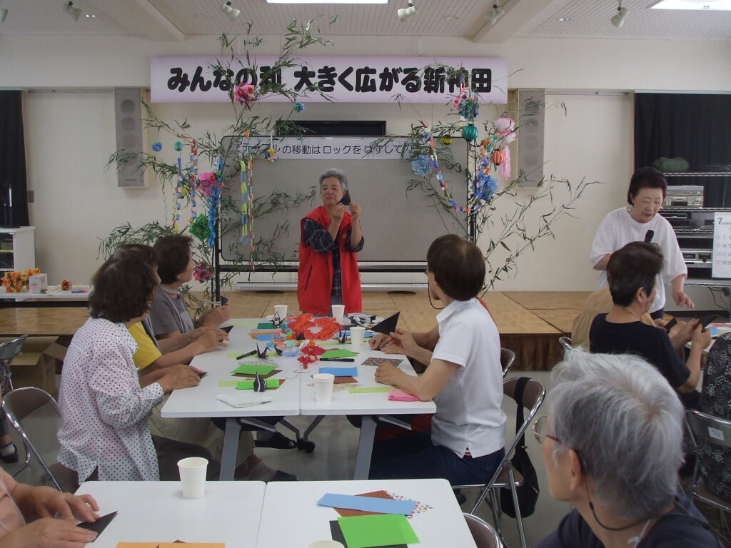 社会福祉協議会 地域サロン 七夕まつり 7/4 2025.7.4 今年の七夕祭りは、連日30℃を超える日が続いています。今日は「ほほえみ学級」の皆さんと合同のイベントです。 百人一首の絵柄が描かれている色紙を使って、役員の指導で丁寧に進めています。 折り紙で作る手順をひとつづつ聞いているところ。 短冊に家族の健康と自分の健康、中には世界平和を願う思いも書かれていました。 Facebook Twitter はてブ Pocket Feedly