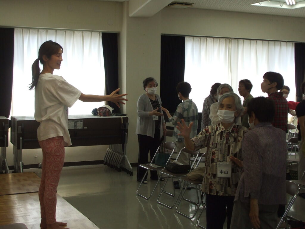 社会福祉協議会 地域サロン 地域包括センター まぎら 6/20 2025.6.22 今日は、講師の 澤谷めぐみ 氏による生活習慣病を予防したり運動機能を維持するための簡単な運動を教えてもらいました。 向かい合った人同士で手を握ったり、同じ動作をしたりの繰り返しで手と脳の働きを良くする運動をしました。 一緒にする仲間がいる地域サロンのような所で運動機能を改善する体操です。仲間と一緒にする運動のほうが楽しくできます。 Facebook Twitter はてブ Pocket Feedly