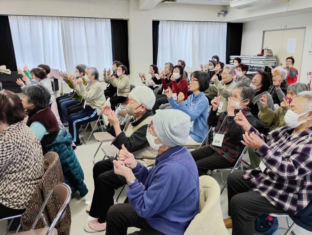 社会福祉協議会 地域サロン 地域包括センターまぎら 2/20 2026.2.21 講師は、まぎら包括センターから派遣された金沢レクレーション協会の「利岡 理香さん」です。以前にもリズム体操を指導していただきました。 参加者は講師の動きに合わせて「手と足」を動かします。 音楽に合わせて手や足を一緒に動かす動きは意外と難しい。家に帰ってできるかな? Facebook Twitter はてブ Pocket Feedly