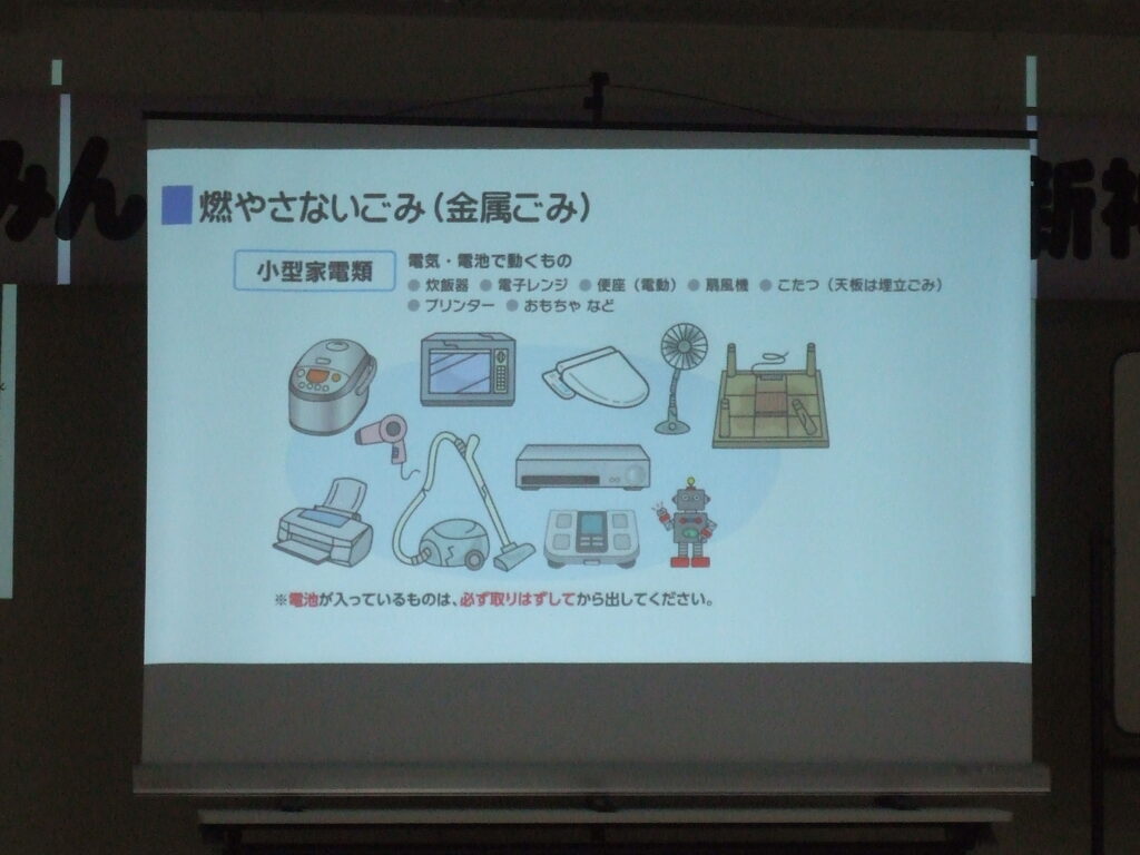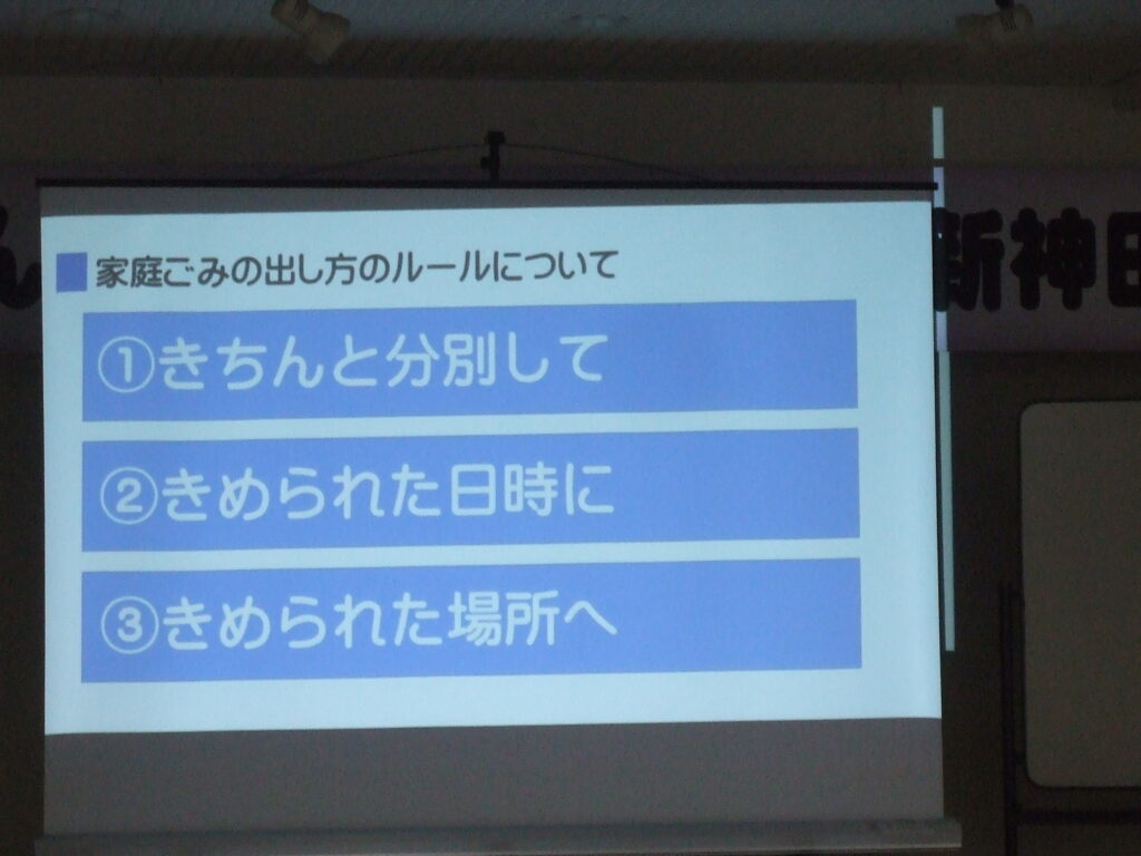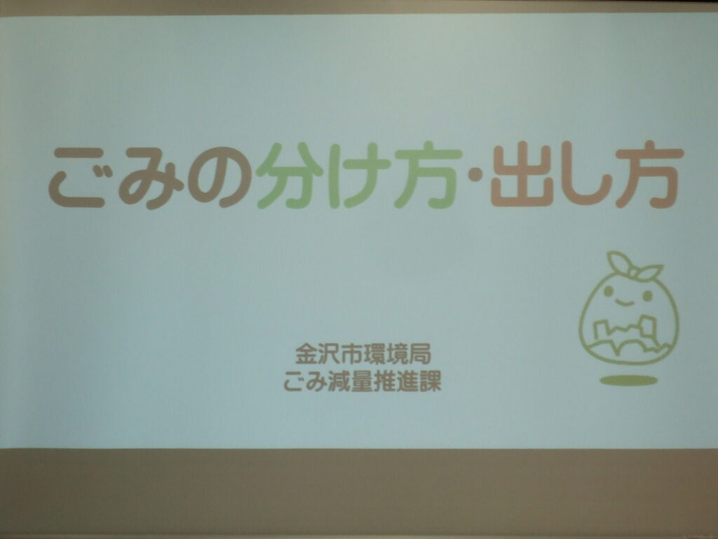 家庭ごみ「分け方出し方」を金沢市環境局ごみ減量推進課の山村,村上の両氏から説明を受けました。今年4月からすでに始まっていますが、今一度、しっかり理解して、まず「減量」を考えましよう。