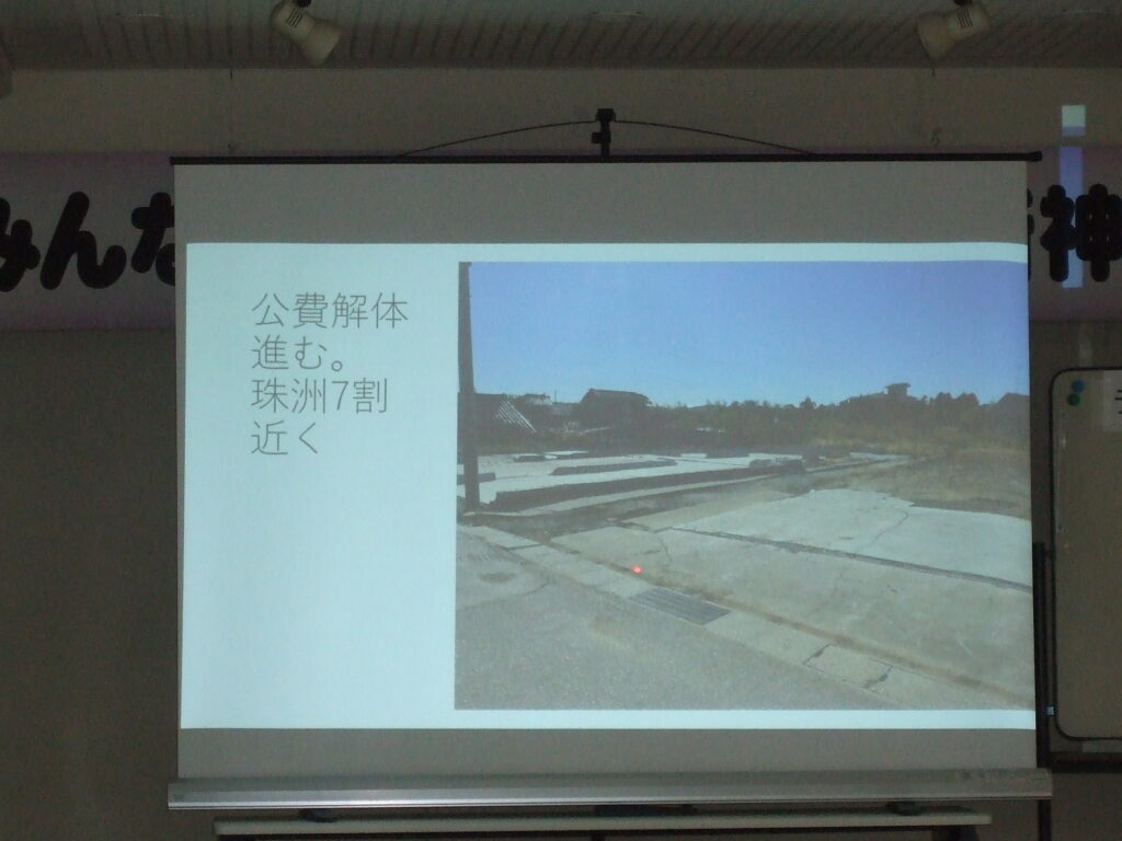 野村副会長から能登半島地震及び豪雨被害があった珠洲地区視察(3/8実施)報告。災害発生時から献身的な対応をされた民生委員 尾形正弘氏(珠洲市 宗玄・中鵜島・稲荷地区担当)の現地での生々しいお話をしていただきました。